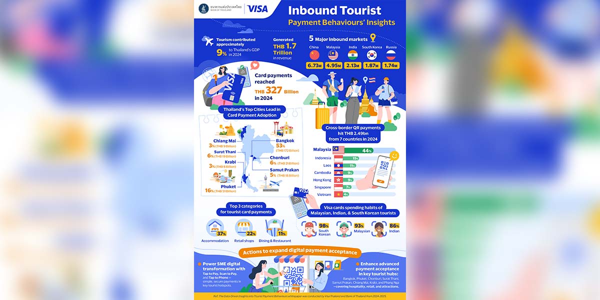 In a landmark collaboration, the Bank of Thailand and Visa Thailand have jointly released the whitepaper “Data-Driven Insights into Tourist Payment Behaviours”, offering a comprehensive analysis of international tourist spending and payment trends. This initiative reflects a shared commitment to accelerating Thailand’s digital transformation and strengthening its position as a world-class tourism destination.