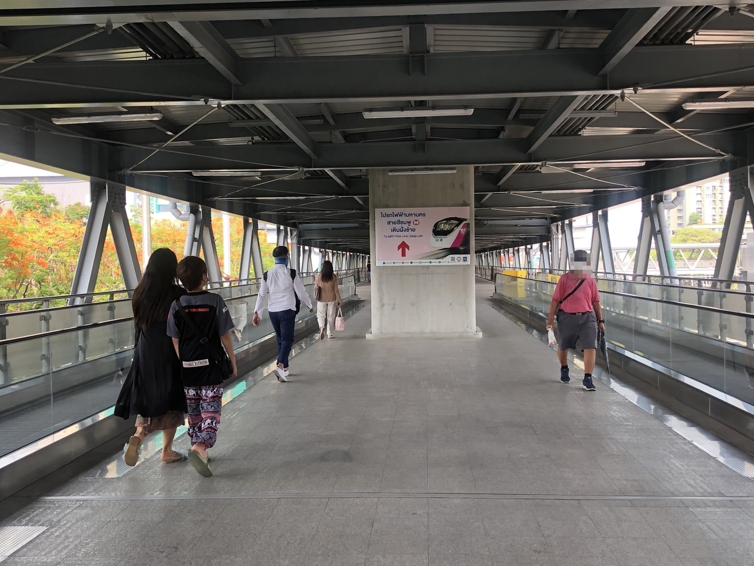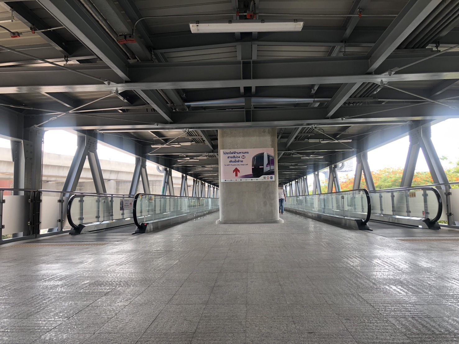 In December last year, the MRT Pink Line (Khae Rai – Min Buri) also opened a SkyWalk connecting the Nonthaburi Civic Centre Station (PK01) of the Pink Line to the Nonthaburi Civic Centre Station (PP11) of the Purple Line to facilitate passengers of the rail system.