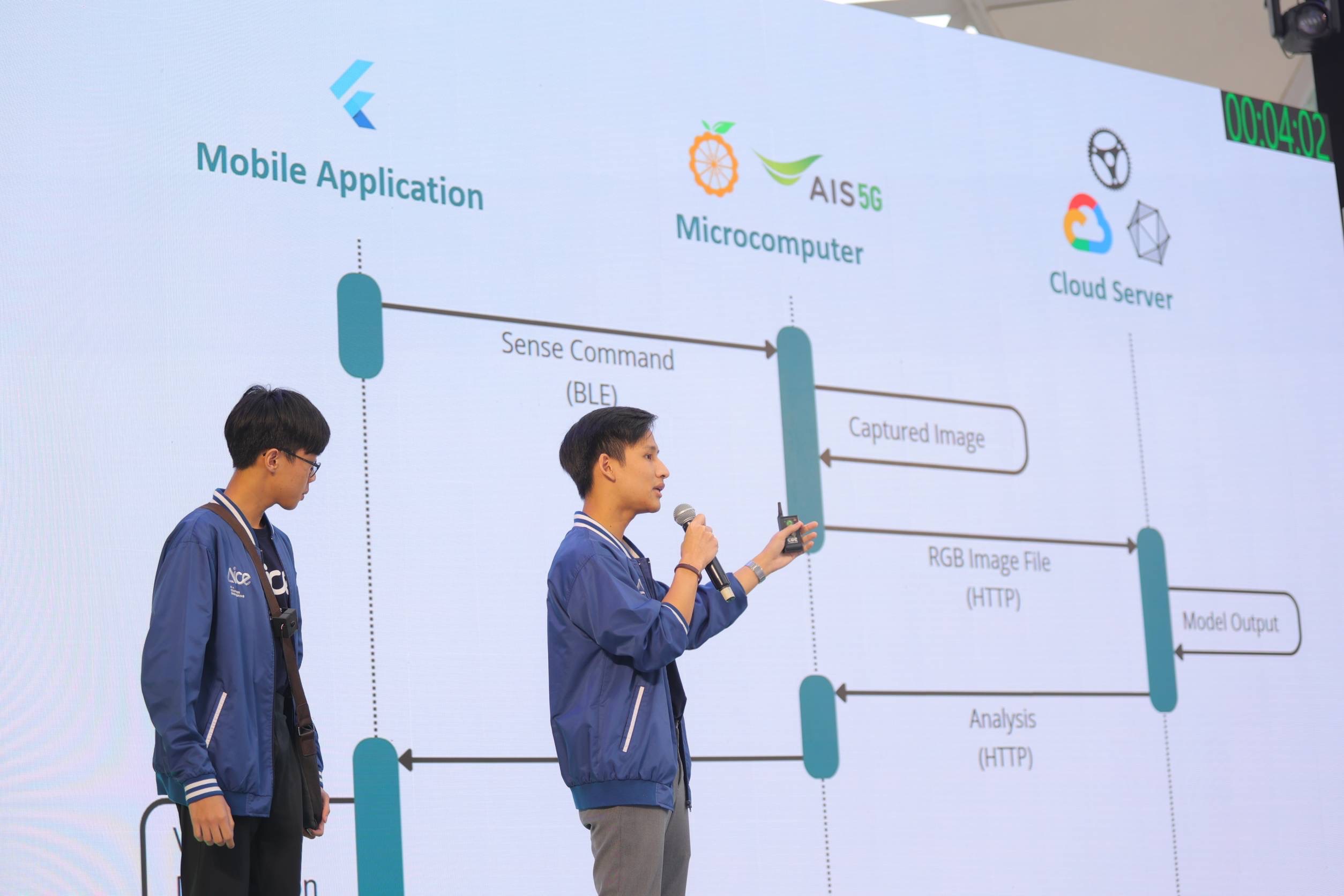 2nd Prize: Team AUTISM from Chulalongkorn University, Mahidol University, and Silpakorn University developed a communication platform for people with Autism Spectrum Disorder (ASD) to create employment opportunities alongside therapy. The platform integrates AI to adapt communication among autistic individuals and between autistic individuals and the general public effectively.