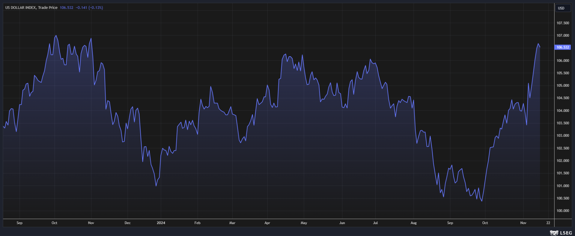 The US 10-year treasury is climbing to more than four-month high and the Dollar Index has seen its best record since October last year. Meanwhile, stocks are starting to lose wind as investors wonder what’s next for the market after the post-election rally.