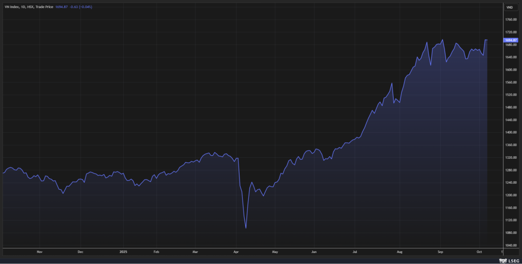 Anticipation surrounding the FTSE decision has already fueled a significant rally in Vietnamese equities. The VN Index closed Monday at 1,695.50, nearing its peak of 1,696.29 reached in early September.