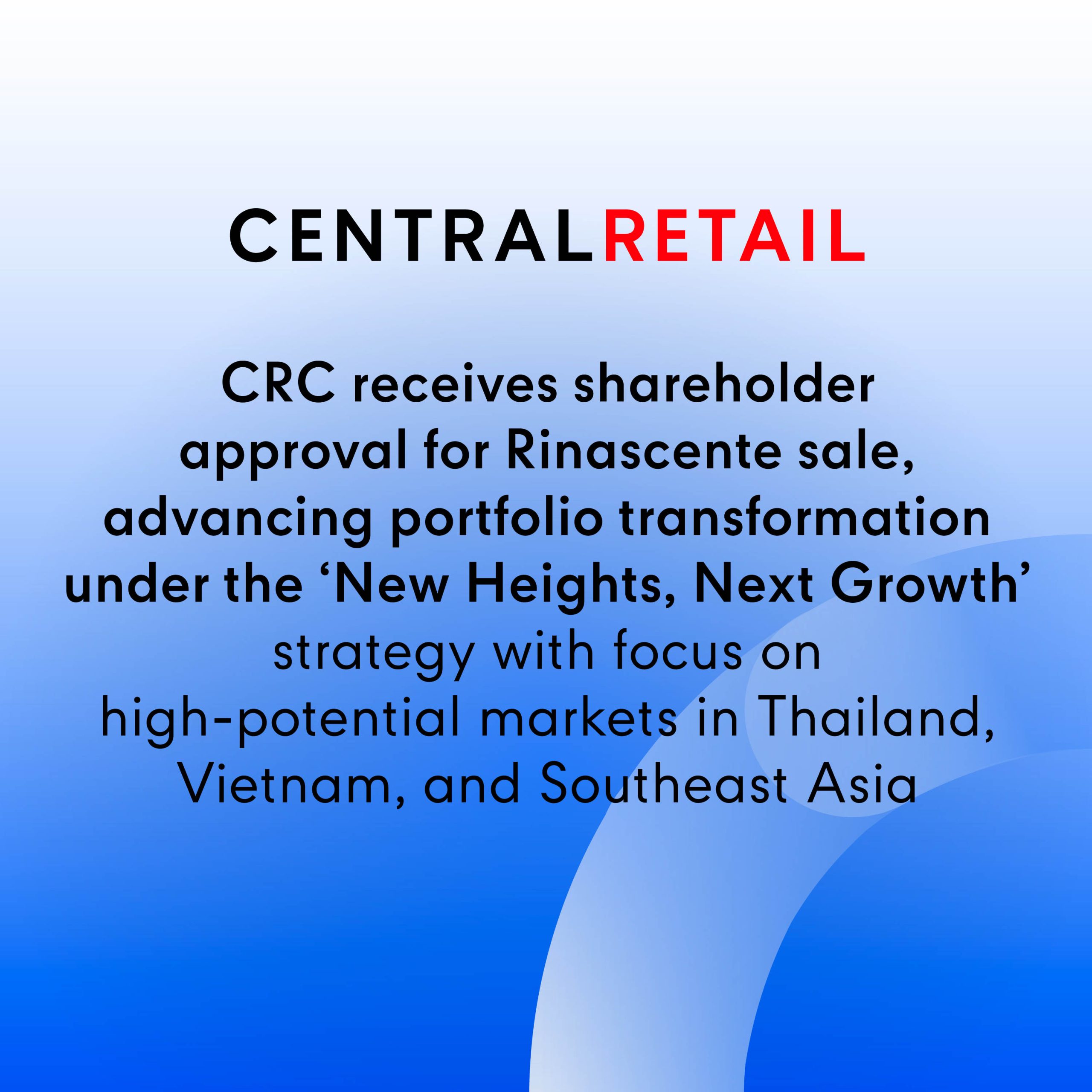 Mr. Suthisarn Chirathivat, Chief Executive Officer of Central Retail Corporation Public Company Limited (CRC) stated, “The shareholders’ meeting approved the sale of assets related to the Rinascente department store business, with 3,159,952,199 votes in favour, representing 89.57% of shareholders who attended the meeting and were entitled to vote, and with no vested interests. This resolution marks another important milestone in CRC’s strategy to strengthen its business structure and drive growth by focusing on its two core markets, Thailand and Vietnam, as well as the broader Southeast Asian region, which offers high potential for retail and wholesale expansion under the ‘New Heights, Next Growth’ strategy. The company aims to enhance competitiveness and support long-term sustainable growth, reaffirming its leadership in retail and wholesale both in Thailand and internationally, while delivering stable value and returns to all stakeholders. CRC remains committed to operating with transparency, accountability, and good corporate governance. The proceeds of approximately THB 14.7 billion from the sale will be used to fund growth and strengthen the company’s financial position. A portion of the proceeds will be allocated to repay financial institution loans, reducing total debt by around THB 5.3 billion, thereby increasing financial flexibility for future expansion. In addition, CRC plans to allocate approximately THB 7.7 billion to pay a special dividend of THB 1.28 per share, providing immediate returns to CRC shareholders”.