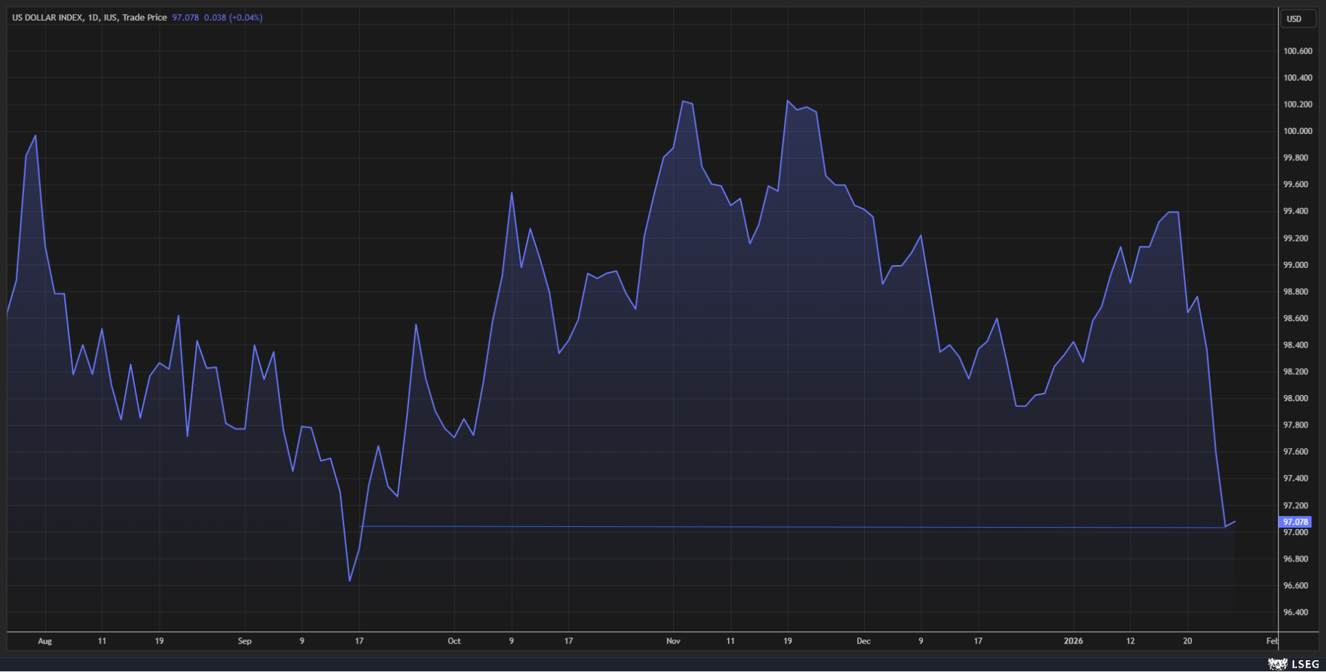 Persistent reports indicating that the United States may be collaborating with Japanese officials to intervene in the yen have put pressure on the dollar, which fell 0.6% during Monday’s trading. The U.S. Dollar Index registered near 97, briefly touching 96.85—a level not seen in four months.