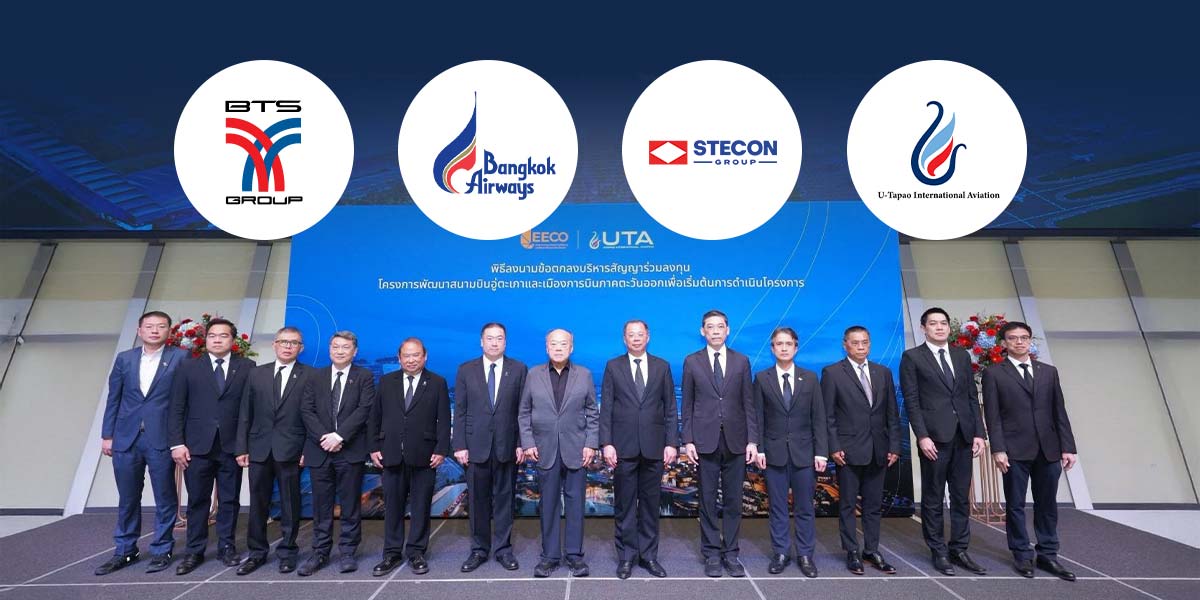 U-Tapao International Aviation Co., Ltd. (UTA), a collaboration of three leading organizations: Bangkok Airways PCL (SET: BA), BTS Group Holdings PCL (SET: BTS), and Stecon Group PCL (SET: STECON), as the private sector driving force behind the Eastern Economic Corridor (EEC) project, has organized a contract management agreement signing ceremony for the joint investment project to develop U-Tapao Airport and the Eastern Airport City.