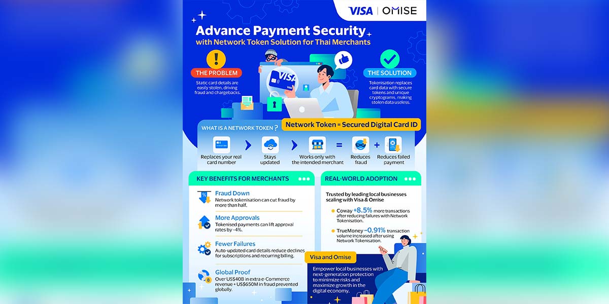 Visa, a world leader in digital payments, and Omise, a leading payment gateway in Southeast Asia, today announced a strategic partnership to bring Visa’s Network Token solution to merchants across Thailand. The collaboration aims to strengthen payment security and support smoother, more reliable digital commerce experiences for Thai consumers.