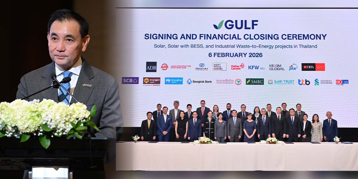 Gulf Development Public Company Limited (SET: GULF) has successfully secured loan facilities totaling THB 60,000 million to support the development of 27 renewable energy power projects with a total contracted generation capacity of 939 MW. These projects comprise 15 solar farms and solar farms with battery energy storage system (Solar BESS) with a total contracted capacity of 843 MW, and 12 industrial waste-to-energy power projects with a total contracted capacity of 96 MW. The financing was arranged through GULF’s subsidiaries, namely, Gulf Renewable Energy Company Limited and Gulf Waste to Energy Holdings Company Limited.