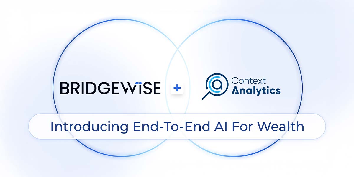 BridgeWise, the global leader in AI for Wealth, today announced the acquisition of Chicago-based Context Analytics, the leading AI-powered alternative data processing company used by tier-one financial firms including S&P Global Market Intelligence. The technology will be made available immediately via API to banks, brokers and investment platforms across APAC working with BridgeWise including Rakuten Securities, Japan Stock Exchange.