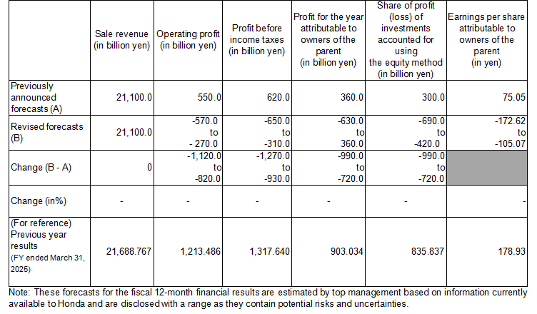 Consequently, Honda now expects to record losses in its consolidated financial results for the fiscal year ending March 2026, resulting in the revision of previously announced forecasts for the consolidated financial results for the fiscal year. More details and background of the decision and revisions made to the fiscal year forecasts are explained below.