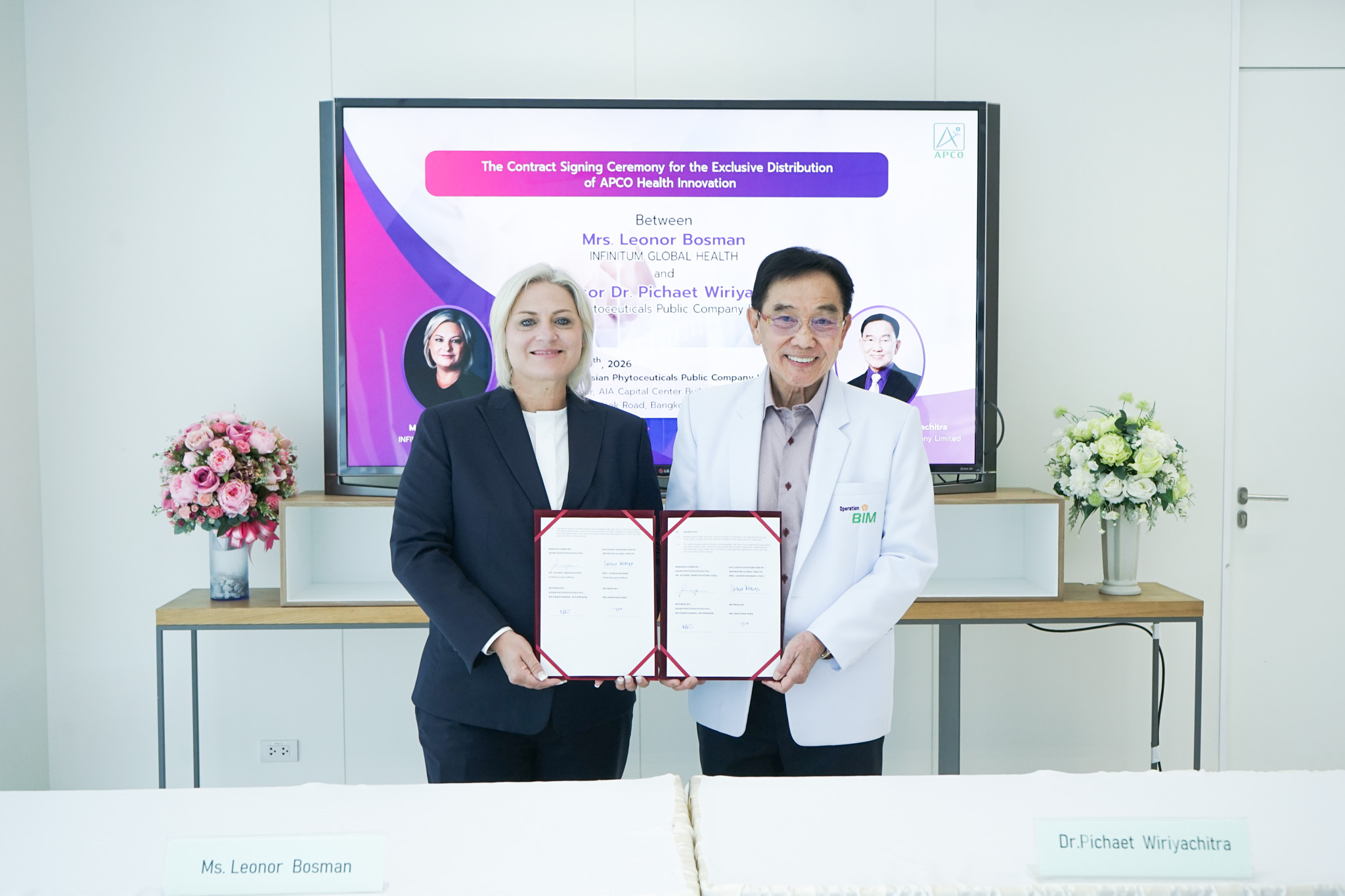 Professor Dr. Pichaet Wiriyachitra, Chief Executive Officer of Asian Phytoceuticals Public Company Limited (SET: APCO), a fully integrated natural health and beauty innovation company, stated that the partnership agreement with Mrs. Leonor Bosman from Infinitum Global Health (IGH), which has strong network to facilitate this operation marks a strategic step in expanding APCO’s global footprint. The collaboration aims to enhance quality of life through advanced health innovations focusing on anti-aging solutions alongside providing solutions for HIV/AIDS and cancer patients.