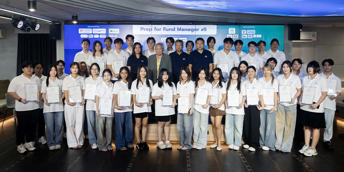 The 5th batch of the Prep for Fund Manager course provided 12 classes over more than one month, combining both theoretical and practical knowledge. Students developed skills with expert instructors from the fund management profession, including Kasikorn Asset Management (KAsset), TISCO Securities, Metha Asset Management, GABLE Public Company Limited, the Securities and Exchange Commission (SEC), Mahidol University International College (MUIC), and Thammasat Business School. The program aimed to cultivate knowledge, and enhance both hard skills and soft skills, providing practical experience for students to further develop academically and professionally.