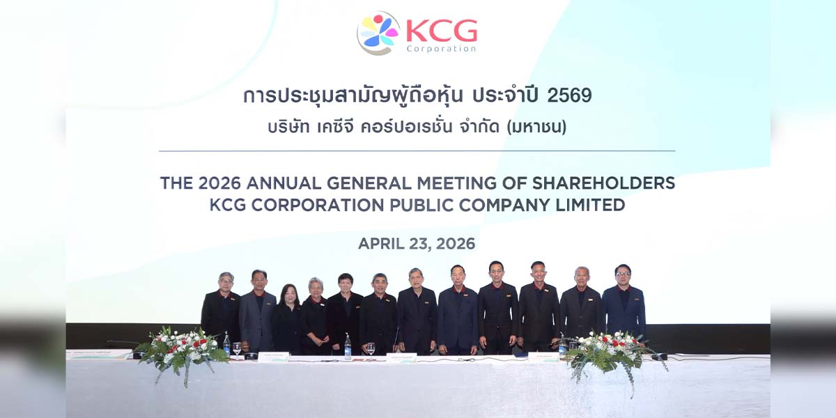 Dr. Chaiyawat Wibulswasdi (7th from left), Chairman of the Board; Mr. Tong Dhiranusornkit (8th from left), Chairman of Executive Committee; Mr. Damrongchai Vipawatanakul (6th from left), Chief Executive Officer and Managing Director; along with the Board of Directors of KCG Corporation Public Company Limited (SET: KCG), attended the 2026 Annual General Meeting of Shareholders, held in a hybrid format.