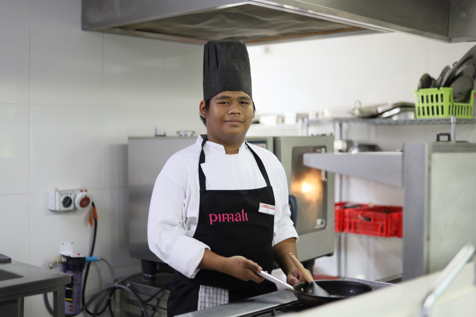Nong Juk – Prasobchoke Yodtong, a jovial young man from Nong Khai specializing in culinary arts, shares his journey: “The opportunity to study at Pimali has deepened my understanding of kitchen work and the systematic preparation of food. Previously, I enjoyed cooking, but it was largely experimental. Now, I can methodically combine various ingredients and create delectable dishes. After completing my studies here, I aspire to work in a professional kitchen and, eventually, establish a small restaurant to generate income and support myself in the future.”