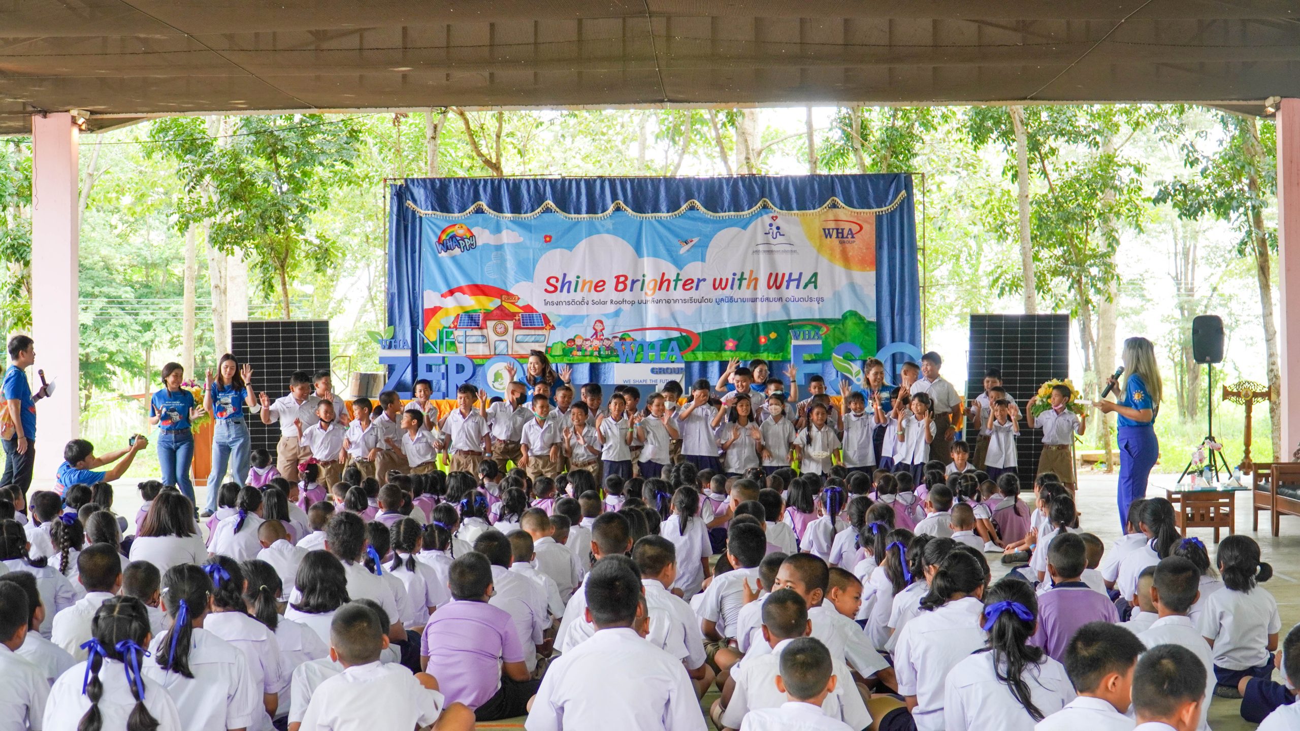 Recently, Ms. Jareeporn Jarukornsakul, Chairman of the Executive Committee and Group CEO of WHA Corporation PCL or WHA Group, Dr. Somyos Anantaprayoon Foundation along with executives and WHA Group employees joined in delivering Solar Rooftop and sports equipment to Nikhom Sang Ton Eng School Rayong Province 9 under the Shine Brighter with WHA project to promote the use of clean energy and reduce the school’s utility costs so that the education budget can be allocated to teaching and learning more efficiently.