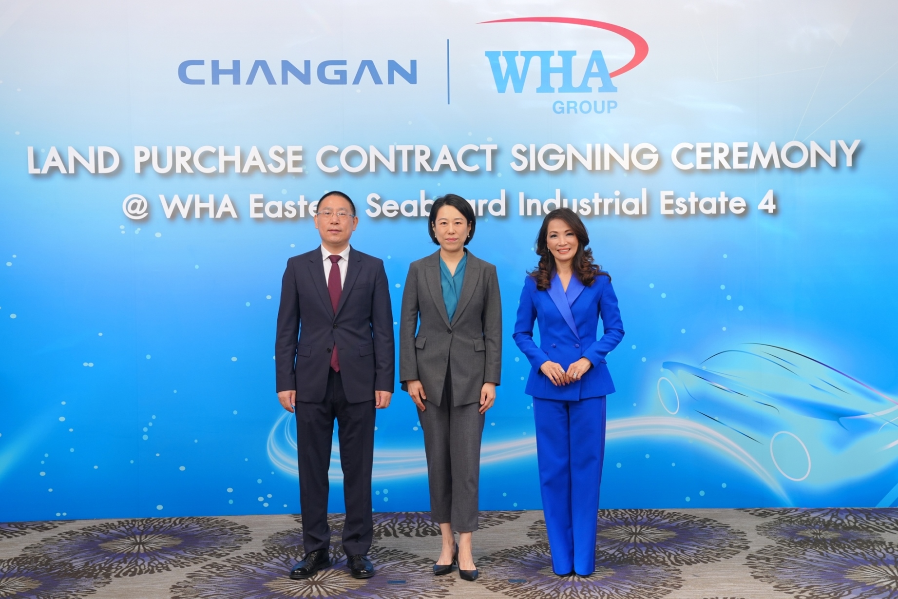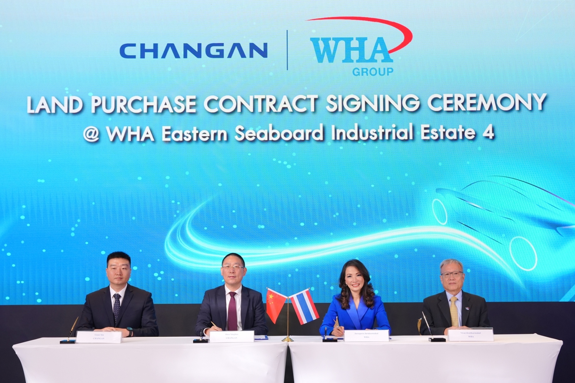 WHA Industrial Development PLC, a subsidiary of WHA Group, announced today the signing of a land purchase agreement with Changan Auto Southeast Asia Co., Ltd., a subsidiary of Changan Automobile, a China’s leading automotive group, for a 250-rai (99-acre) plot at WHA Industrial Estate Eastern Seaboard 4 (WHA ESIE 4) in the Eastern Economic Corridor (EEC) for setting up an electric vehicle manufacturing plant. The deal marks a significant foreign direct investment (FDI) of 2023, reaffirming Thailand’s outstanding potential and integrated investment promotion approach as well as the recognized standard of WHA Group’s Smart Eco-Industrial Estate fully equipped with advanced infrastructure and environmental management system that make it one of the world’s best industrial estates to target industries of the future. The partnership also stands for another progress in driving Thailand towards becoming a fully integrated leading global EV hub.