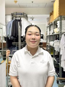 Noey joined The Sukhothai Bangkok Hotel in the housekeeping and linen department, handling everything from measuring uniforms to repairs. “It feels great to be myself,” she said. “I send money home every month now. My mom says not to worry about money anymore — and I’ve started saving, too. My dream is to finish building our family home for my mom.”