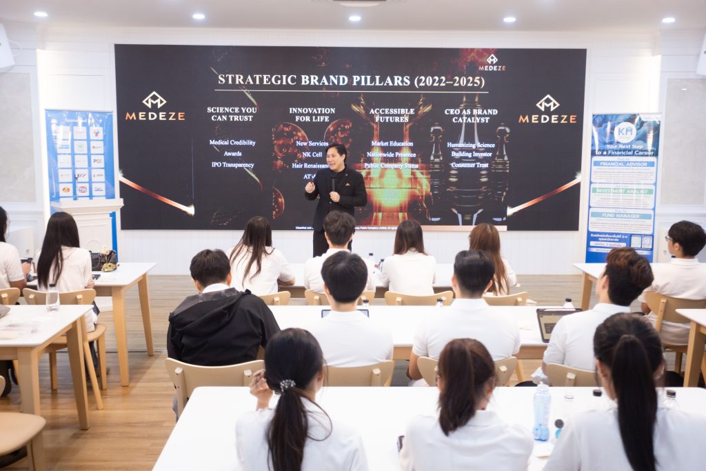 Medeze Group Public Company Limited (SET: MEDEZE) recently opened its headquarters on Phutthamonthon Sai 4 Road to welcome students from the KH Academy’s ‘Prep for Investment Analyst’ course, now in its fourth cohort. The visit highlighted MEDEZE’s position as a leading stem cell storage provider in Southeast Asia.