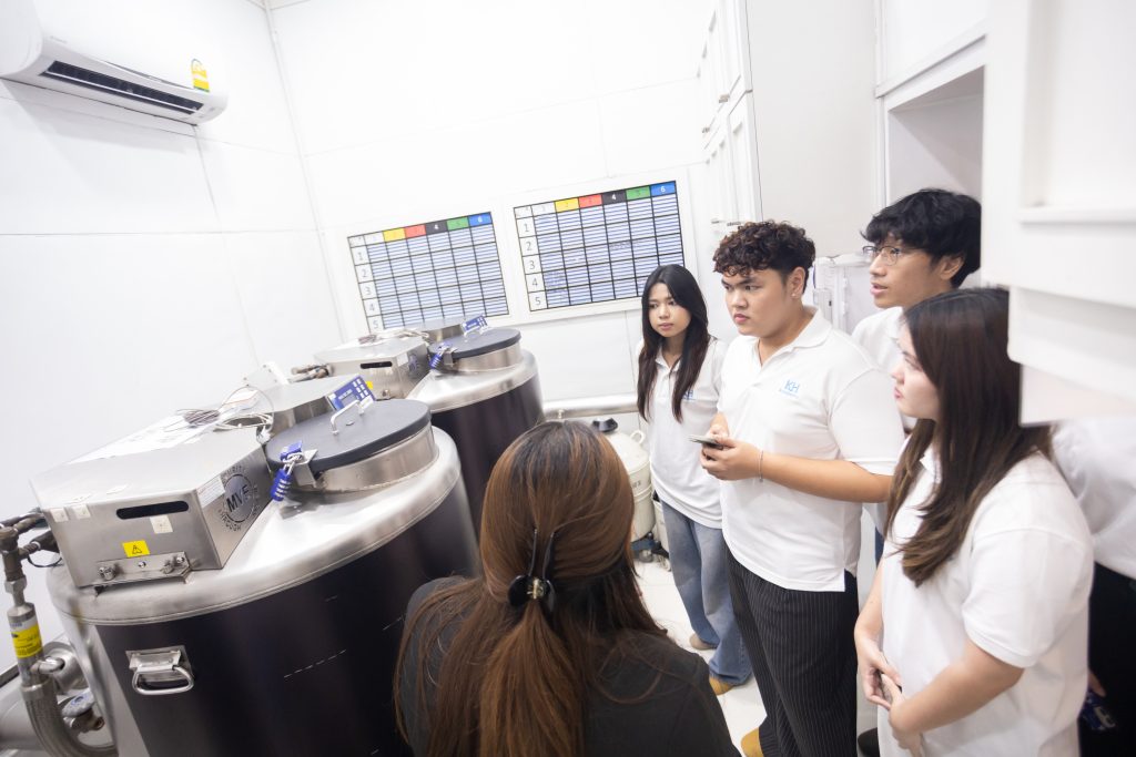 During the event, Dr. Veerapol Khemarangsan, M.D., CEO & Co-founder of MEDEZE, and Dr. Wasawat Sroithong, Investor Relations, welcomed the group and shared insights into the company’s vision, growth strategies, and groundbreaking innovations in stem cell, hair follicle cell banking, and NK cell technologies. Students also received an exclusive tour of MEDEZE’s internationally accredited laboratory, emphasizing the company’s commitment to industry standards and leadership in the region.