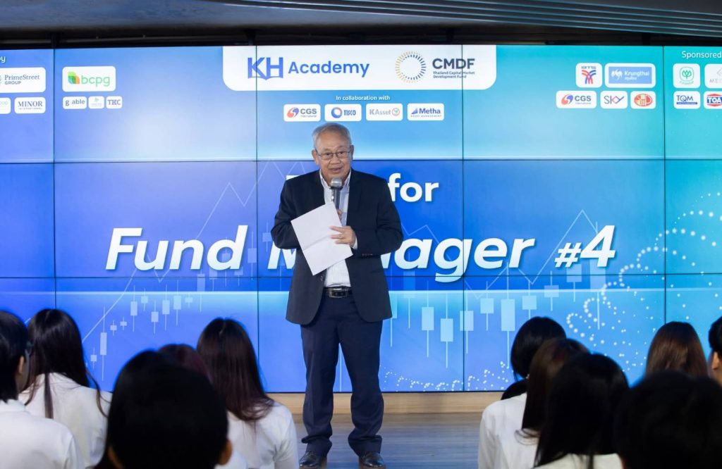KH Academy was established to continue the mission of ‘Kaohoon Turakij’ in nurturing young university students towards careers in finance and investment without any charges. The academy collaborates with private sector partners and supporters, including B.Grimm Power Public Company Limited (BGRIM), PrimeStreet Advisory (Thailand) Company Limited, BTS Group Holdings Public Company Limited (BTS), Charoen Pokphand Group Company Limited, Krung Thai Bank Public Company Limited (KTB), Medeze Group Public Company Limited (MEDEZE), Millennium Group Corporation (Asia) Public Company Limited (MGC), Petchsrivichai Enterprise Public Company Limited (PCE), CGS International Securities (Thailand) Company Limited (CGSI), Srinanaporn Marketing Public Company Limited (SNNP), SKY ICT Public Company Limited (SKY), Food Moments Public Company Limited (FM), TQM Insurance Broker Company Limited (TQM), TOA Paint (Thailand) Public Company Limited (TOA), Turnkey Communication Services Public Company Limited (TKC), Minor International Public Company Limited (MINT), G-Able Public Company Limited (GABLE), Master Style Public Company Limited (MASTER), and Ichitan Group Public Company Limited (ICHI).