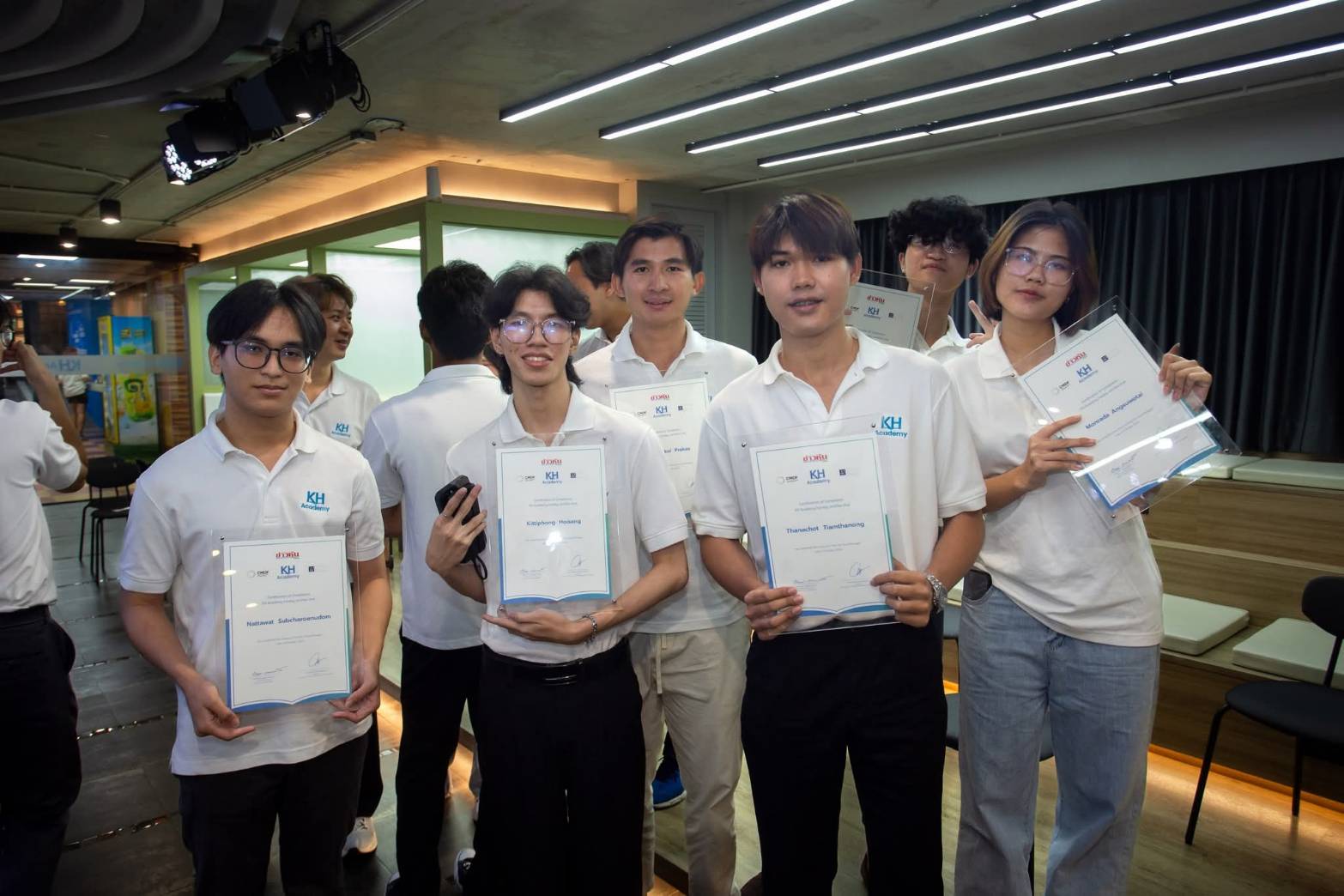 The event, held at the KH Academy Ratchathewi campus on November 13, 2025, was presided over by Mr. Chanchai Sanguanwong, Director of Kaohoon Turakij Daily Newspaper, who delivered an inspirational address and presented certificates to all 48 graduates from six leading Thai universities, namely Chulalongkorn University, Thammasat University, Srinakharinwirot University, King Mongkut’s Institute of Technology Ladkrabang, University of the Thai Chamber of Commerce, and Bangkok University.