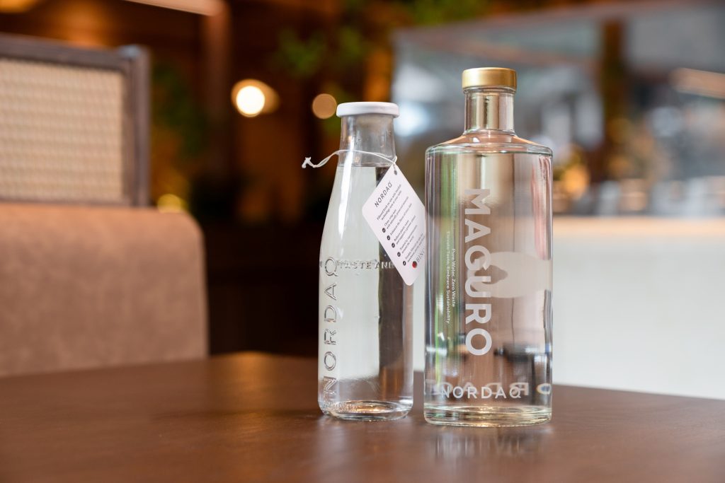 “Their high-quality filtration system provides clear, chemical-free water while preserving essential minerals that are beneficial to health, enhancing the natural taste and enjoyment of meals. It also represents an environmentally friendly choice that reduces the carbon footprint from production and transportation, and minimizes plastic bottle use. NORDAQ water is served in specially designed glass bottles, which are precisely washed using high-standard cleaning machines and reused to minimize waste.”