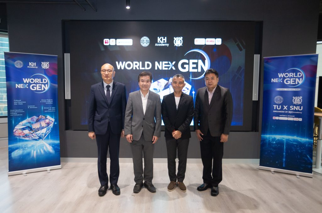 WorldNexGen 2026 is an international academic collaboration between Thammasat University, Seoul National University, and KH Academy. Its objective is to nurture new-generation leaders through in-depth learning of economic and financial policies, which are key drivers for national advancement. The project is supported by top private sector partners, including Hoban Group, B.Grimm Power PCL, Nakwol Blueheart, Royal Orchid Sheraton Hotel, and Kaohoon Turakij.