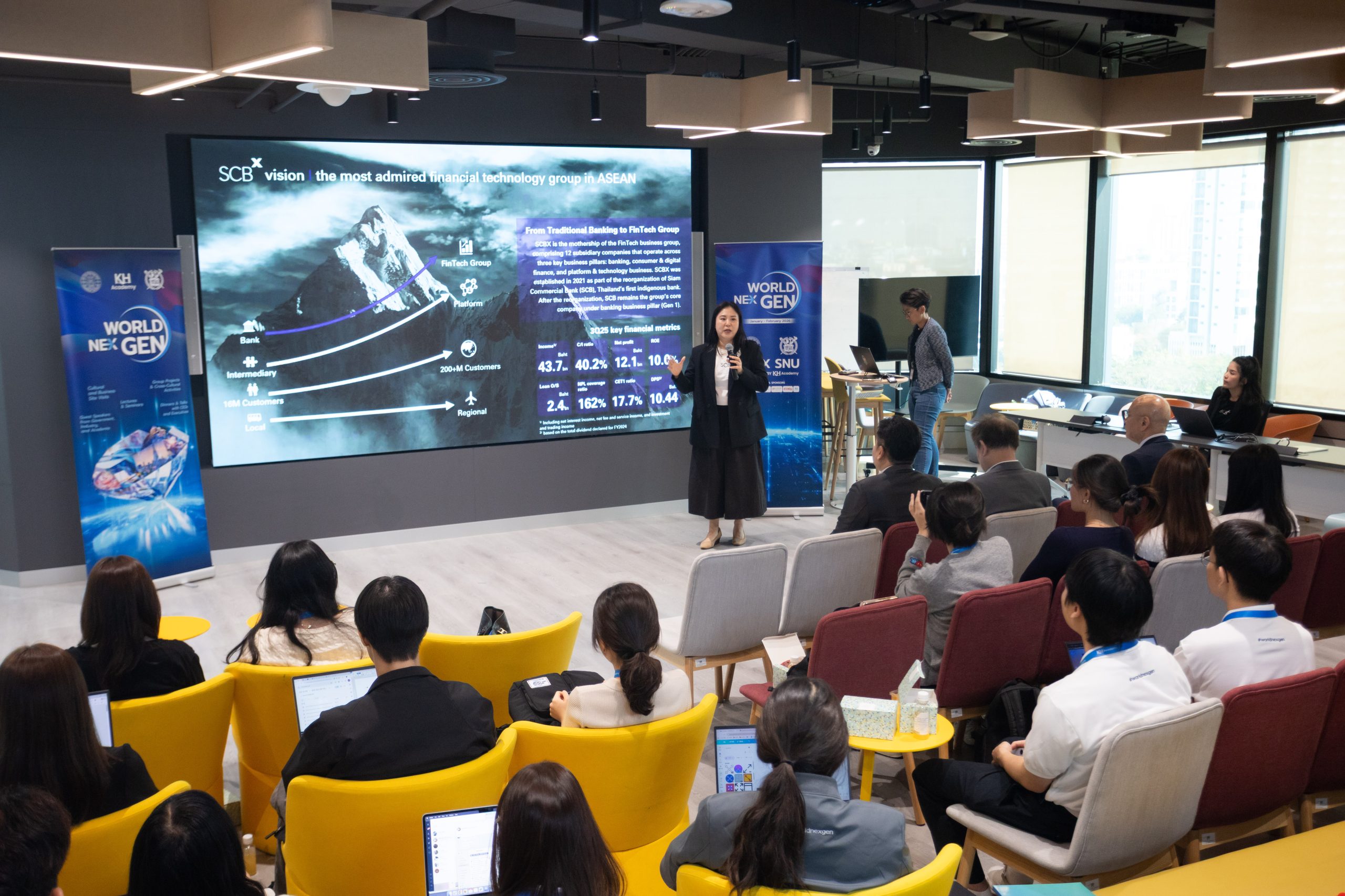 SCB X Public Company Limited (SCB) opened its headquarters, SCBX Townhall, on the 9th floor of SCB Park Plaza, Ratchayothin, to welcome students and professors from the “WorldNexGen 2026” program.