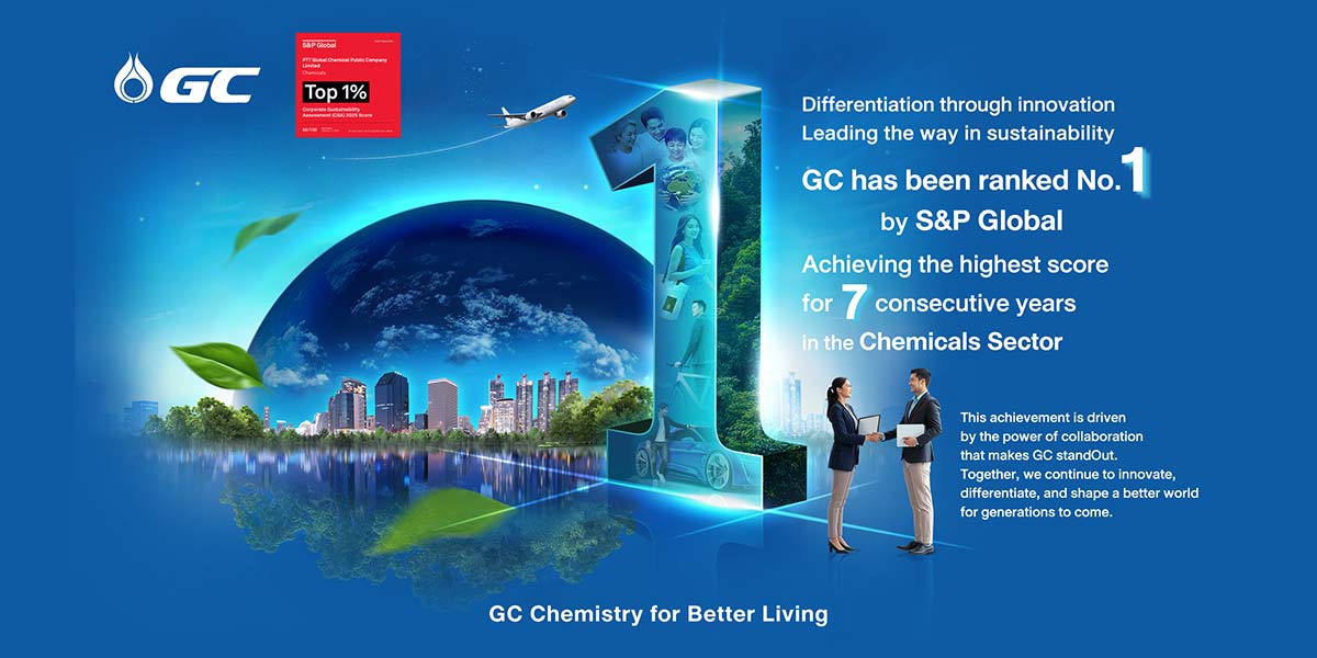 PTT Global Chemical Public Company Limited (SET: PTTGC, or GC) has been ranked No. 1 for the seventh consecutive year, becoming the first company in the world in the Chemicals Sector to achieve this distinction in the S&P Global Corporate Sustainability Assessment (CSA) 2025 by S&P Global (formerly DJSI). GC has also been selected as a member of the S&P Global Sustainability Yearbook 2026 for the 13th consecutive year, underscoring its role as an innovation-driven organization that creates tangible differentiation through business operations that balance Environmental, Social, and Governance (ESG) dimensions.