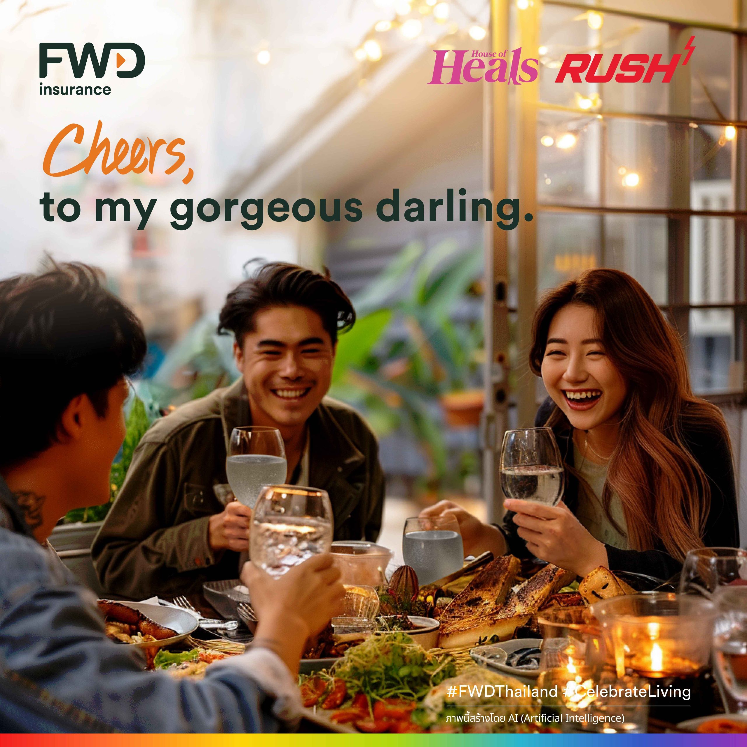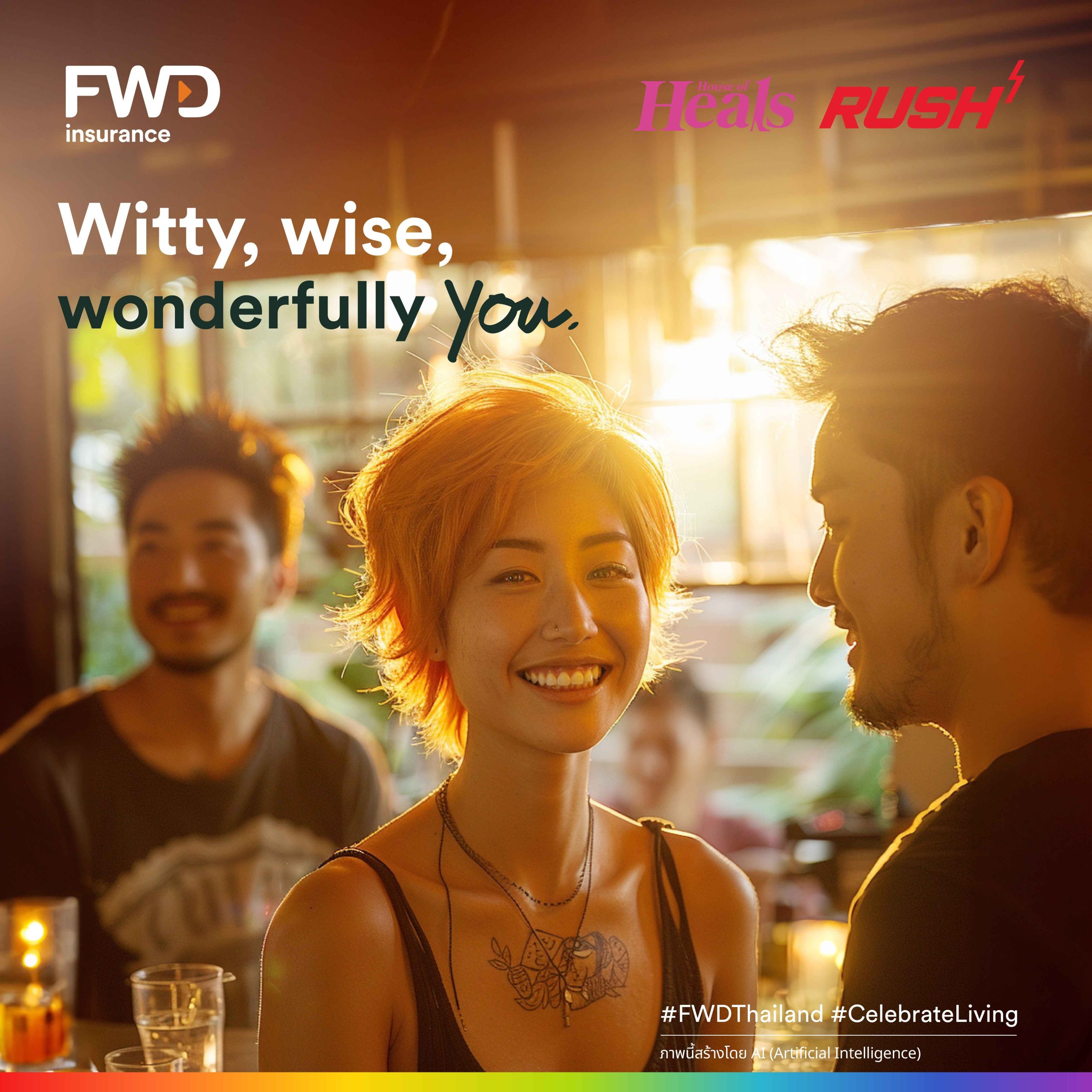 This year’s campaign, “You’re our pride, we’re proud,” is powered by big data to effectively convey the message of ‘Celebrate living’ and the vital concept of equity, which may feel distant to some. Our strategic approach is to present these ideas through a universally relatable lens, expressing sincere gratitude and immense pride for our cherished LGBTQIAN+ friends and all those who hold a special place in our lives. Through inspiring graphics and stirring music crafted with generative AI technology, we aim to inspire and uplift. FWD Insurance has forged partnerships with House of Heals in the Ratchaprasong area and Rush in the Silom area, both staunch supporters of diversity and equity. Together, we transform their spaces with vibrant media, creating an atmosphere of celebration. The uplifting strains of “Thank You for being you,” a song composed using AI for Pride Month, fill the air, enhancing the joyous ambiance. Additionally, specially designed coasters serve as a symbolic reflection of our commitment to living together equally. Throughout June 2024, these establishments will stand as beacons of celebration and gratitude, honoring the LGBTQIAN+ community.