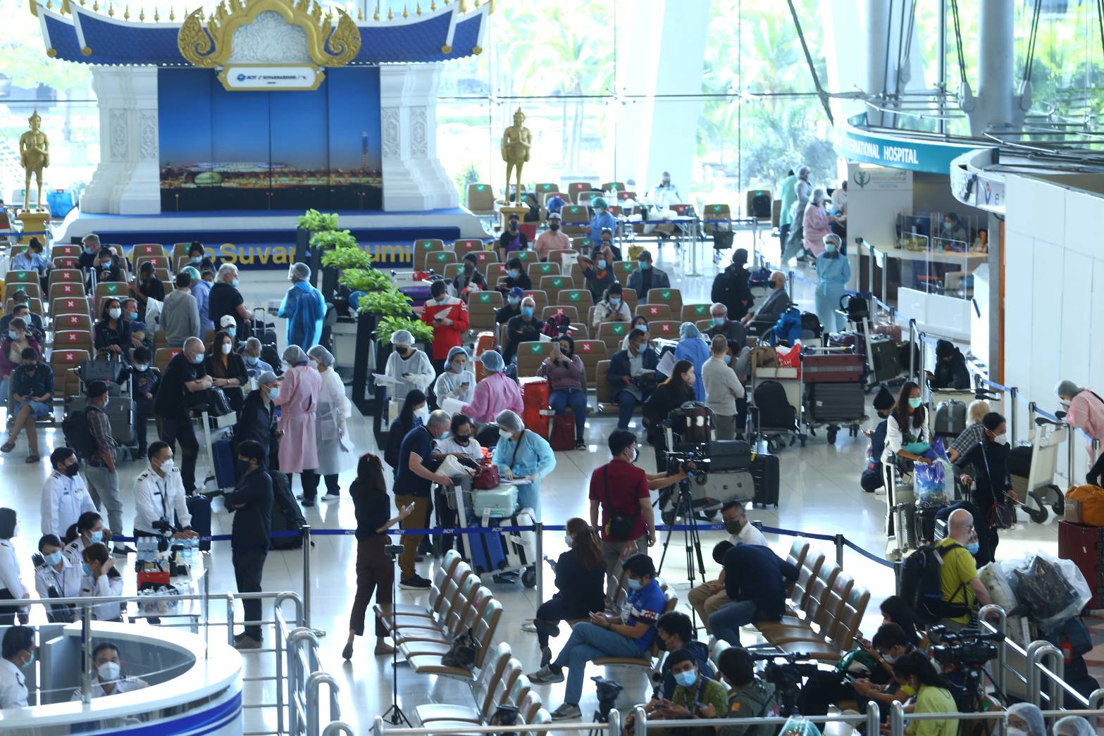Tourist arrivals were greeted with airport and medical staff on the landing to provide services and screening measures before leading to the designated hotels for Covid-19 test.