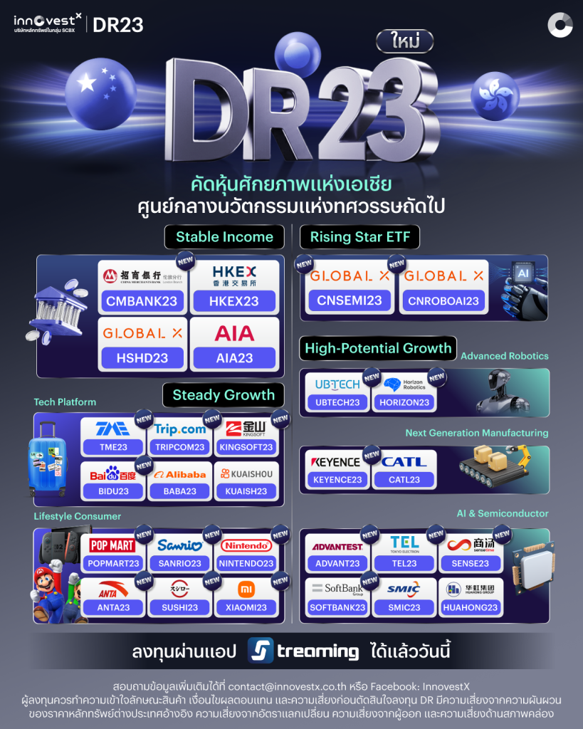 InnovestX Securities Co., Ltd., the investment flagship under SCBX Group, is reinforcing its position as an all-in-one investment platform with the launch of a new DR23 series. This latest offering features 20 curated securities from China, Hong Kong, and Japan—regions poised to become the innovation hubs of the next decade.